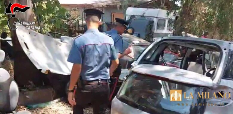 Aci Sant’Antonio: scoperta centrale del riciclaggio auto in un fondo agricolo. Arrestato 33enne, denunciato l’anziano proprietario