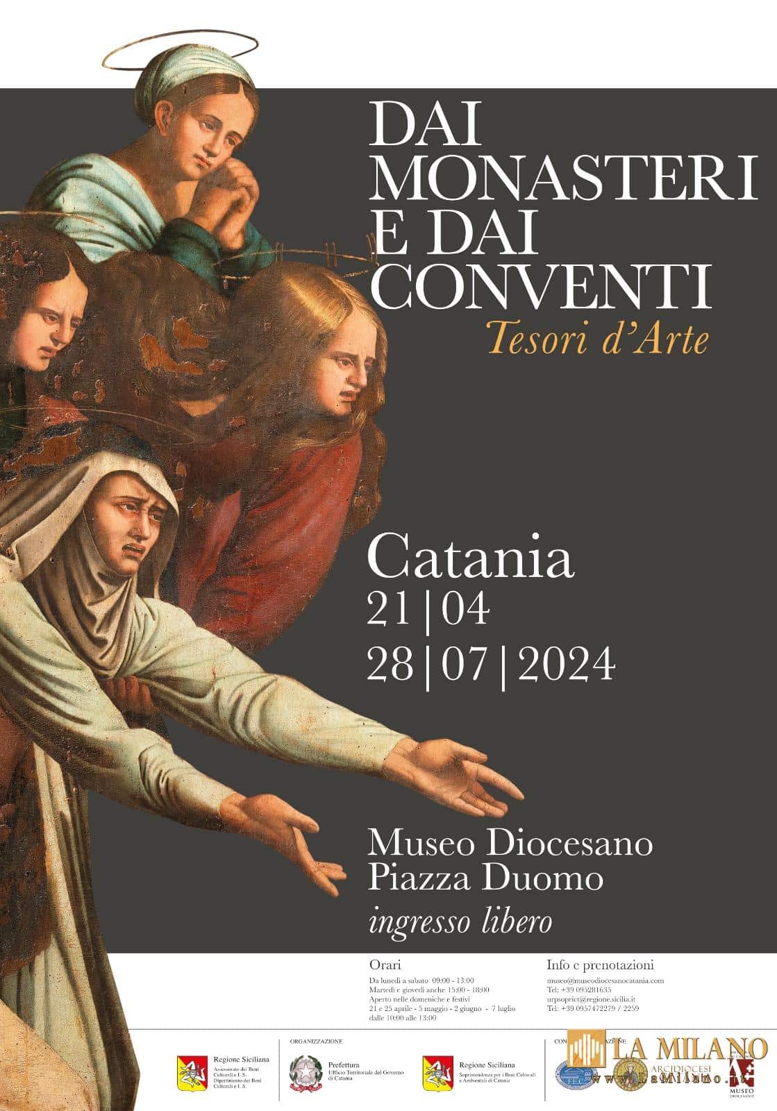 Immense pale d’altare, dipinti su tavola di scuola antonelliana raramente esposti al pubblico, codici miniati e volumi antichi ma anche busti, uniformi storiche, arredi e paramenti sacri. Sono le opere d’arte che saranno esposte dal 20 aprile al 28 luglio al Museo diocesano di Catania nella mostra “Dai monasteri e dai conventi”.